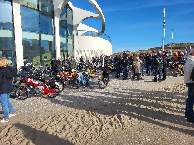 Was erg gezellig, en in vergelijking met afgelopen jaren nog wat drukker ook (ik schat zo'n 100 brommerts op de Boulevard). De dag begon voor mij bij het Puchmuseum van Leo van Kester in Wateringen, vanwaar we met een groepje via Loosduinen naar de Boulevard reden. Daar hebben we een uur of 2 gestaan, waarna een flink aantal naar de stamkroeg van de Haagse Puchclub aan de Klimopstraat trok voor een drankje, broodje bal en een warme kom ertensoep.